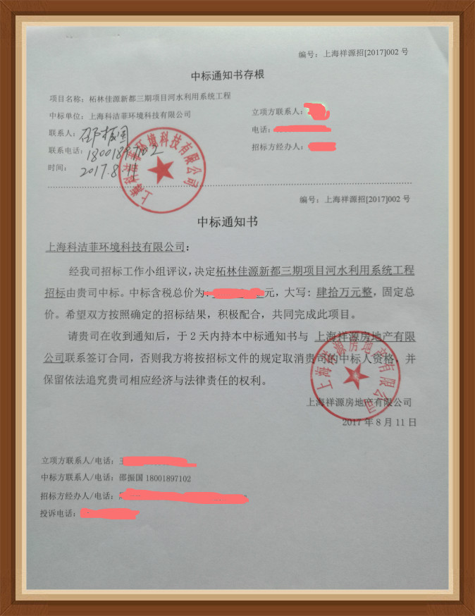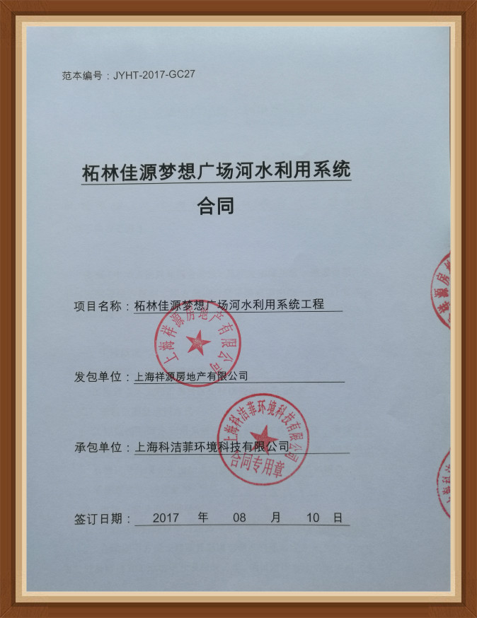 熱烈祝賀上海科潔菲中標(biāo)佳源地產(chǎn){柘林佳源夢(mèng)想廣場(chǎng)海綿城市河水利用項(xiàng)目}